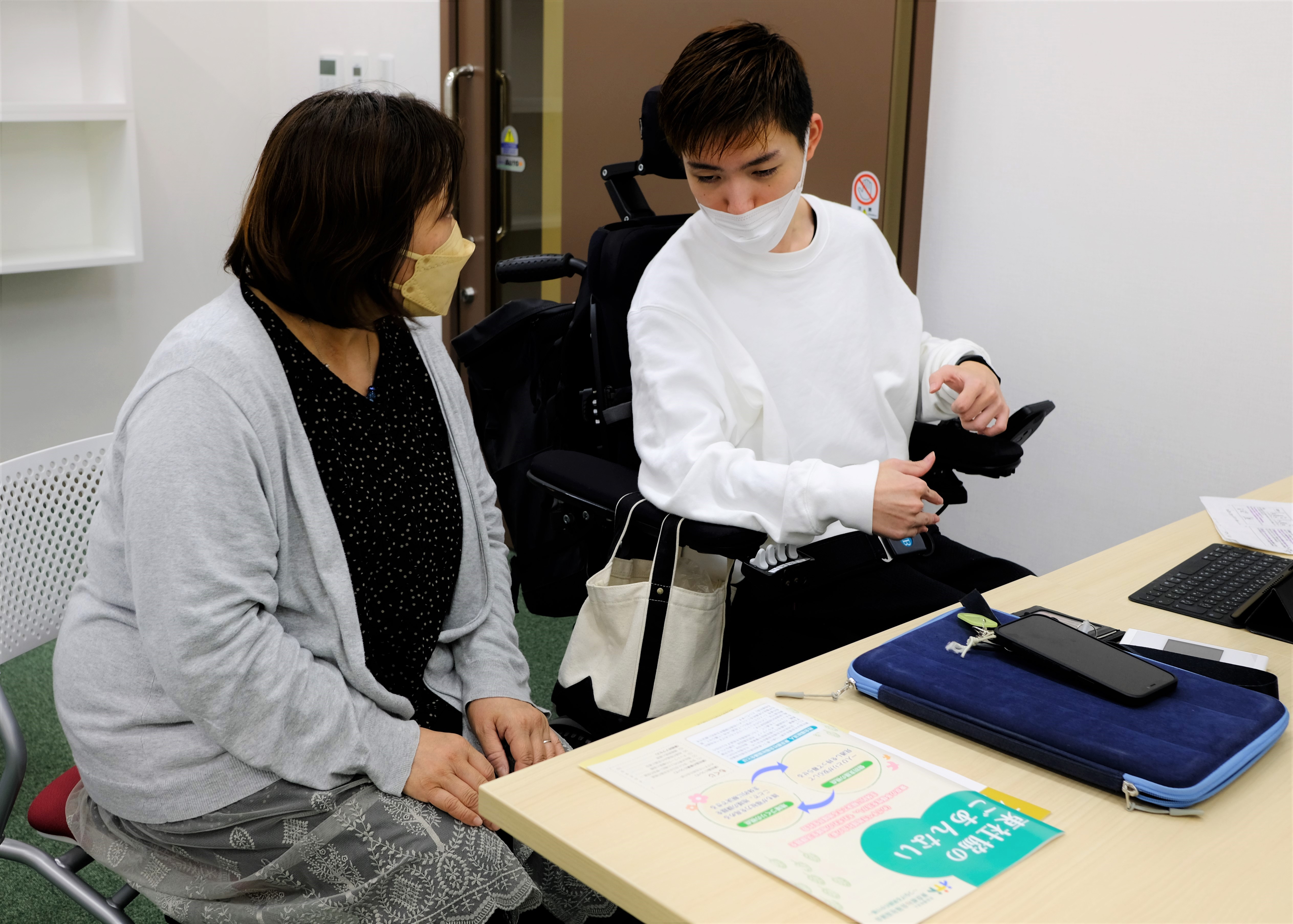 受験時には、一人ひとりに必要な配慮を伺っています。具体的な配慮としては、麻痺があるため時間を延長して試験を受ける、解答用紙を拡大して書くスペースを広くするなどです。ゆくゆくは、受験の時の配慮が入学してからの配慮につながっていきます。私はそのような必要な配慮を伺う面談の時に入りますが、社会福祉士や介護等体験の実習先の配属等の際も、タイミングに合わせて色々な部署と協力しています。