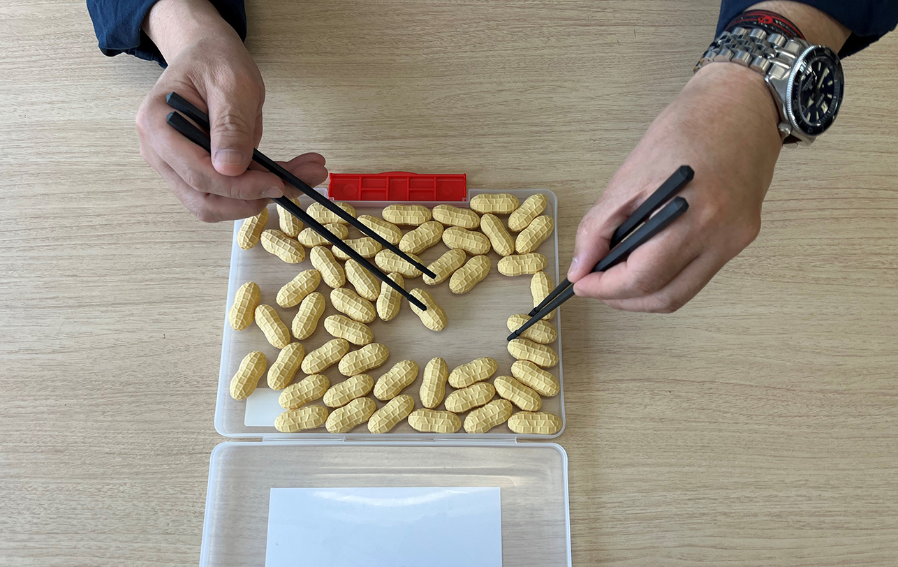 男性を呼び込む工夫として、「箸遊び」などを取り入れています。ピーナッツを箸でつまんで右から左に移す時間を計り、昇級・昇段をめざすものです。途中で失敗してもみんなで笑い合ったりしています。黙っててもできるので、あまりしゃべらない男性にもいいんじゃないかって。私はあまりノーと言わないタイプで、やるためにはどうしたらいいか、もしだめだったらやめればいいという考えでいます。それが、これまでやってこられた理由かもしれません。