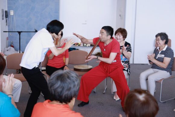 プラモデルみたいに完成形が決まっているものより、自分で自由に表現することが子どもの時から好きでした。教室で落語を披露したり、お楽しみ会で自作のコントをやってみたり。表現を仕事にしたいと思ったのはずいぶん先ですが、自由に表現することは自分にとってずっと大事なことだったのかもしれません。高校卒業後は演劇部の仲間と劇団「電気曲馬団」を立ち上げて、表現活動をスタート。ただ、劇場に足を運ぶ多くは知り合いで、既存の関係性のなかで演じ手とお客さんが出会うのは面白くないと思って、街中で大道芸をやり始め、その後は駅前広場での投げ銭形式の野外劇に発展していきました。パフォーマンスによって人と人との間に関係性が生まれることに面白さを見出すようになるなかで、1997年にカナダのダンスフェスティバルに参加したことを機に、世代や文化とか障害とかそれぞれの違いを超えて人と人とが出会い直すような場を世の中につくっていきたいと思うようになりました。そんな時に誘いもあって、舞台活動とともに福祉施設等の現場でワークショップをはじめていきました。