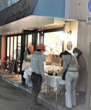 週3日夜2時間だけの販売にしたことで、販売員は、日中は雑誌、夜はパン屋さんの販売、と仕事を両立できるようにしました。コロナ禍のもと、衛生管理にも注意を払っています。評判は上々で、毎回あっという間に完売です。