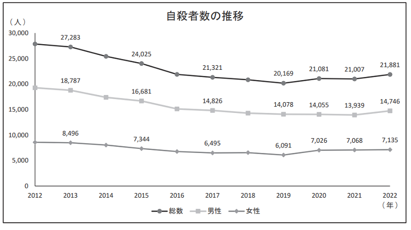「令和4年中における自殺の状況(令和5年3月14日)」をもとに作成