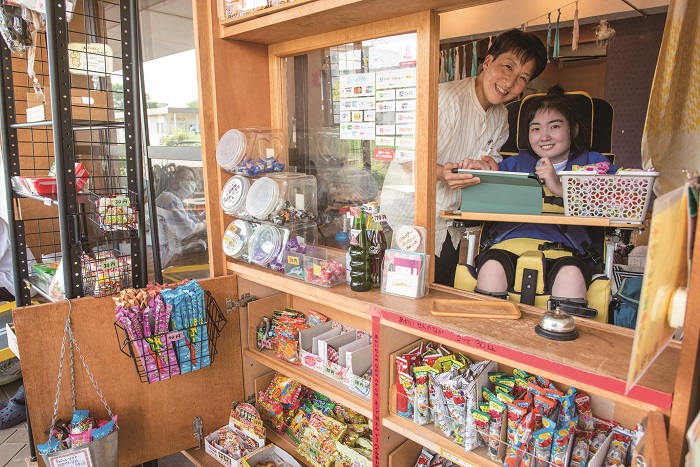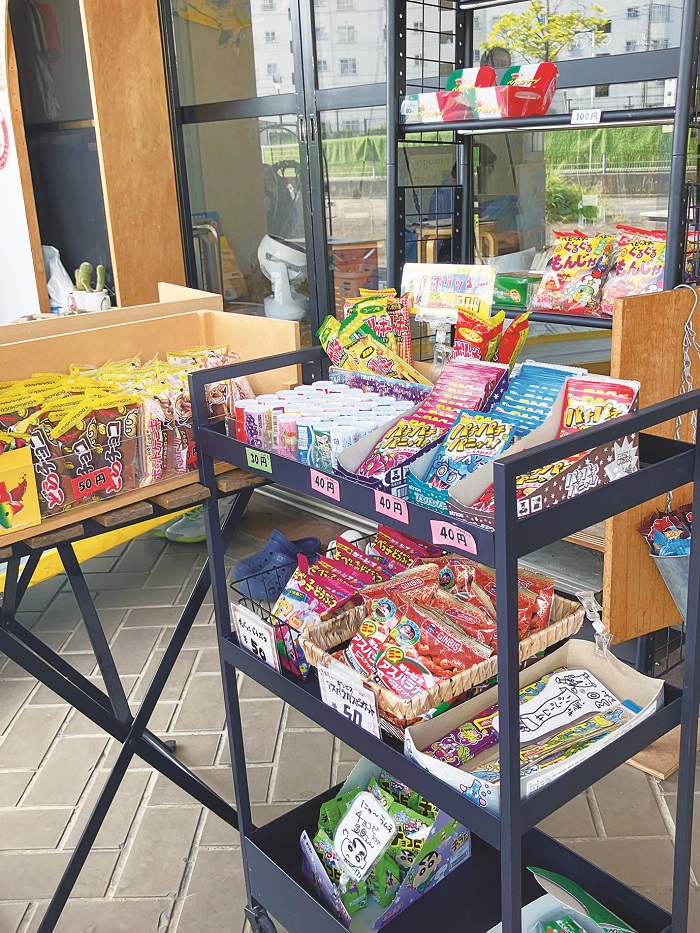 ユニークなのが、事業所内に「まちの駄菓子屋さん」と名付けた駄菓子販売スペースがあること。なぜ駄菓子屋なのか影近さんに伺うと、「駄菓子屋って社会を学べる一つの場所だと思っていて。おこづかいでどれだけお菓子が買えるか真剣に考えたり、マナーが悪いと店主に叱られたり。駄菓子は安価だから経済格差もあまり感じずにさまざまな年代が対等に楽しめます。そんなところに、社会との接点を持ちにくい子がいることができたら、もっといろいろな景色が生まれるんじゃないかと思いました。実際に始めてみると、障害がある方の社会での“関わりしろ”は、駄菓子販売を通じてたくさんあるんだと気づかされました」と話してくれました。