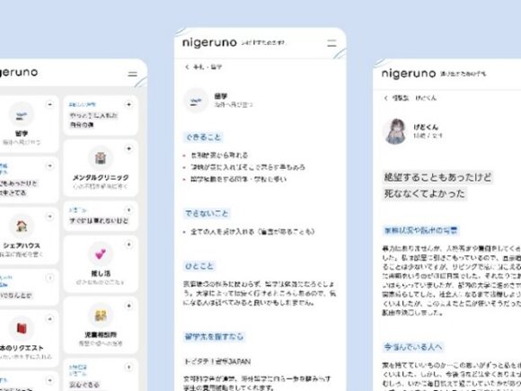 また、いざ行動しようと思っても情報を調べたりするのに苦労したという話を聞いたので、役に立つ情報をまとめたサイト「nigeruno」もつくりました。いろいろな支援団体の情報や、「手札」と称してセルフケアの方法などもまとめています。かつて当事者だった人の経験談や行き詰った時に読んでほしいコラムなども載せているので、少しでも「助かる道があるんだ」と思ってもらえたら嬉しいです。